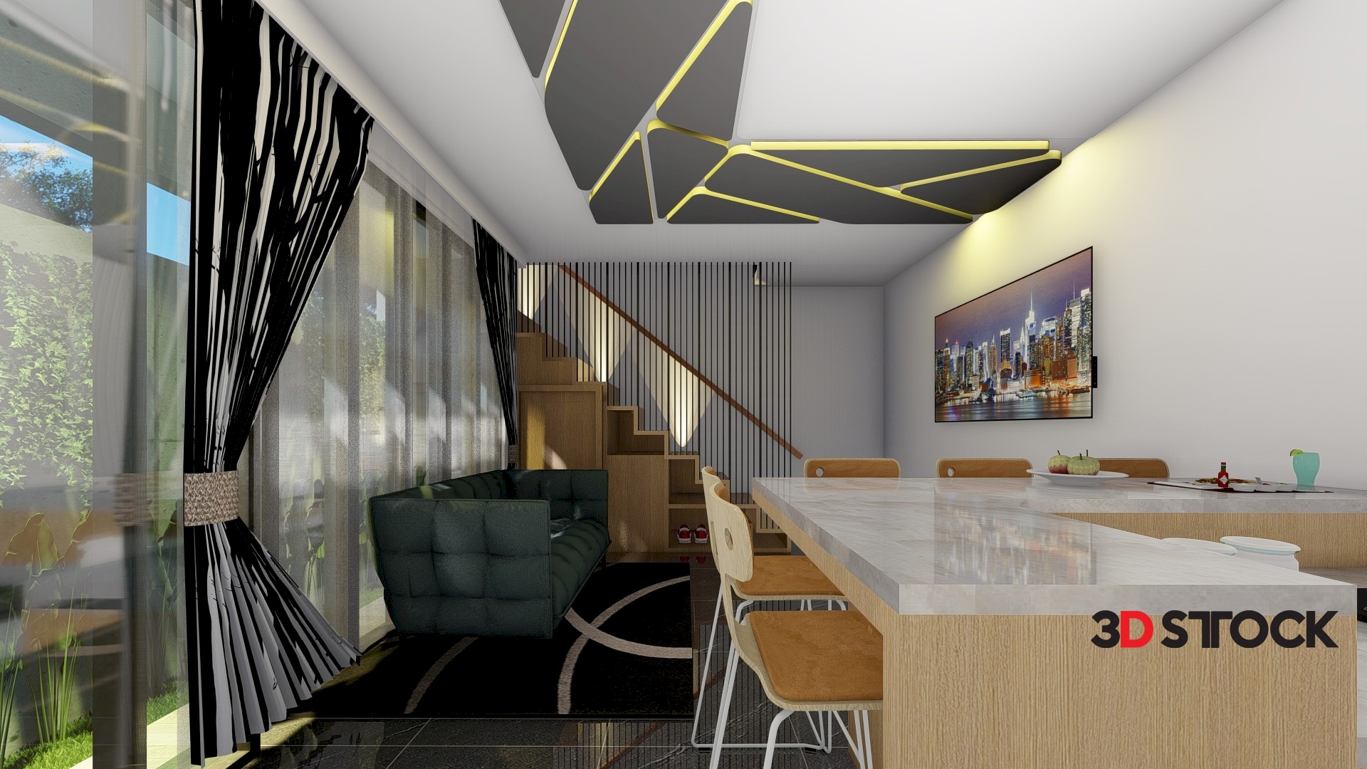 This product contains the sketchup file version 19 of the house 5 x 11 meter complete with interior. This house has 2 floors with a tropical house theme.