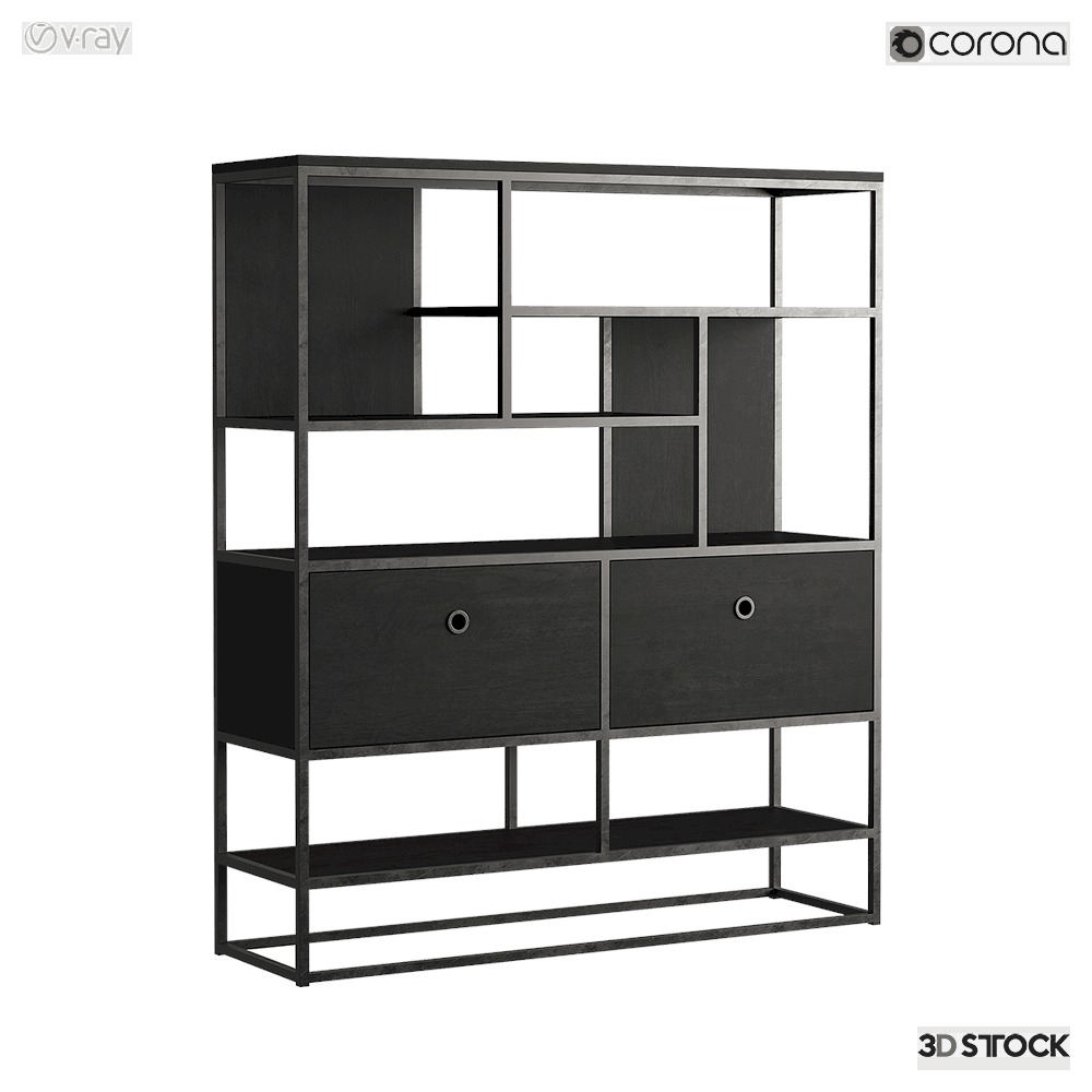 black metal platform and wardrobe bookshelf modeling