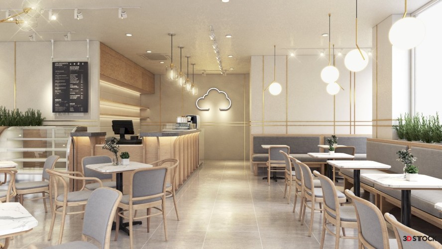 Cafe 3D Model, chair, table, sky, with texture with, light set, ready render settings sketchup file, vray render