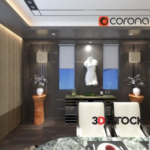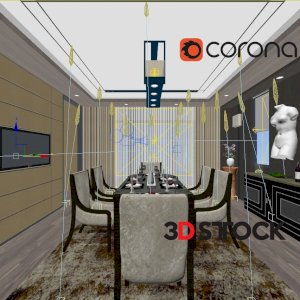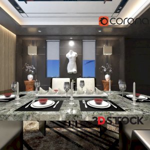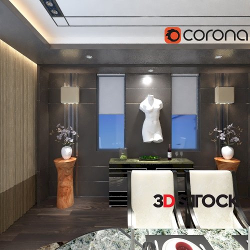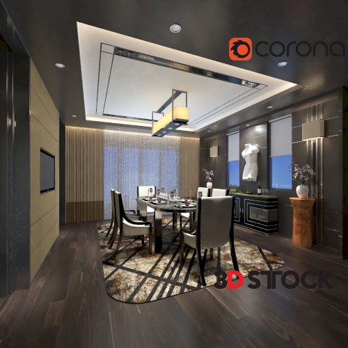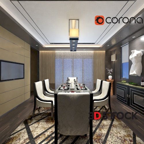 Dining Set Table Chair Plant Flower Vase Rug Carpet Wall Lamp Parquet Curtain Lamp Plate Spoon Fork Glass