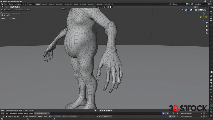 There is a blender file with a character rigging.