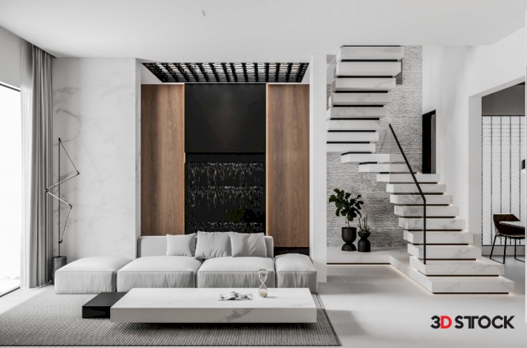 Interiors sets modeling room accessories with texture, with light set, ready render settings,