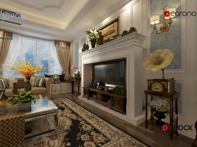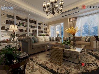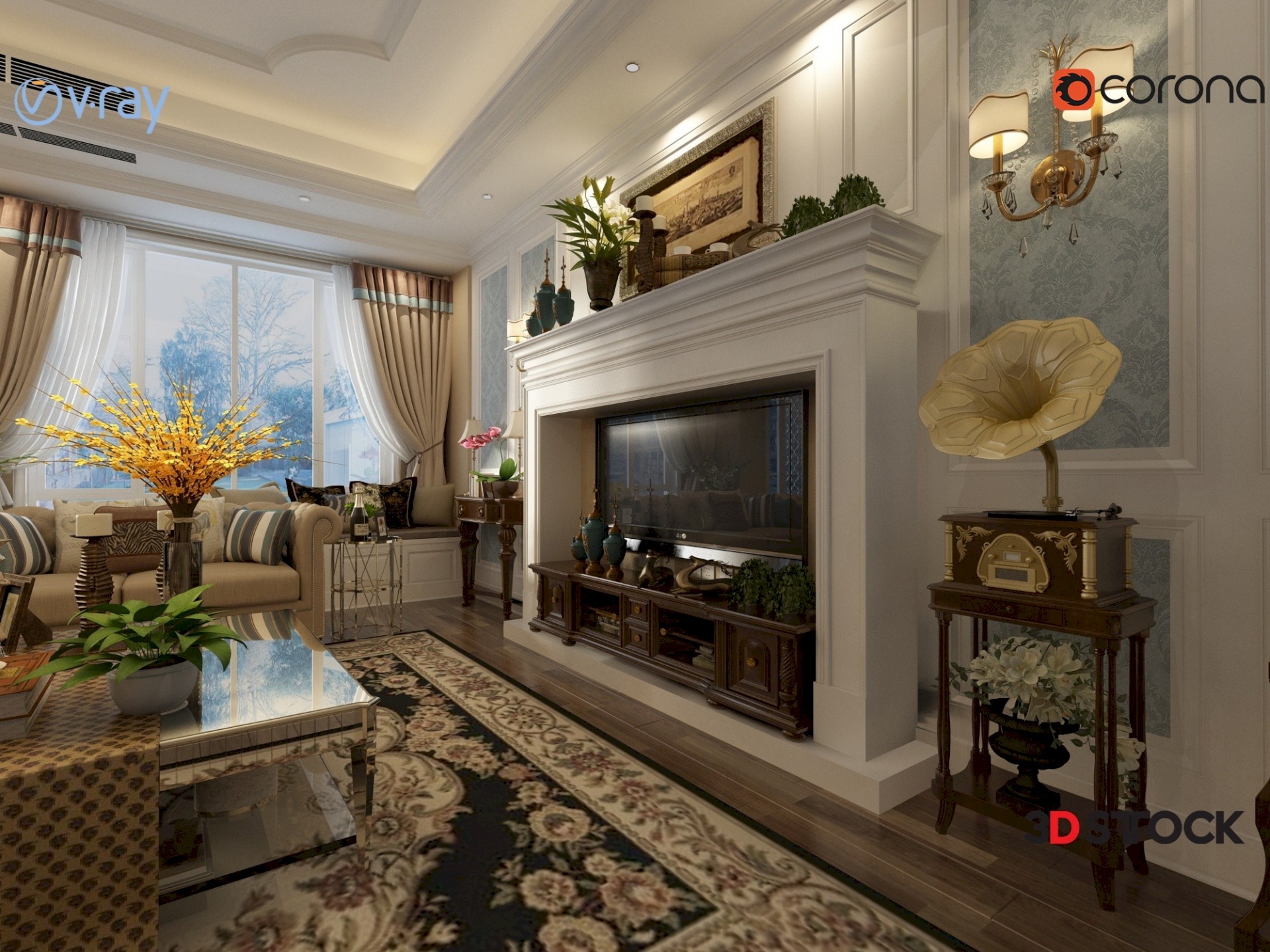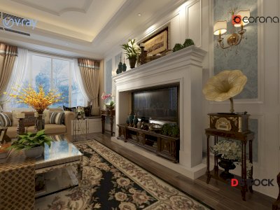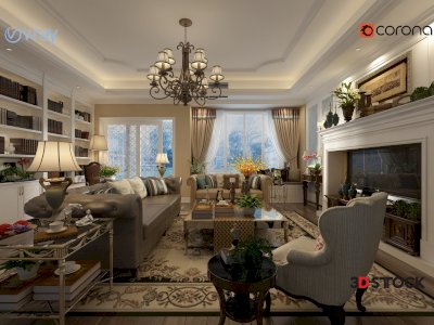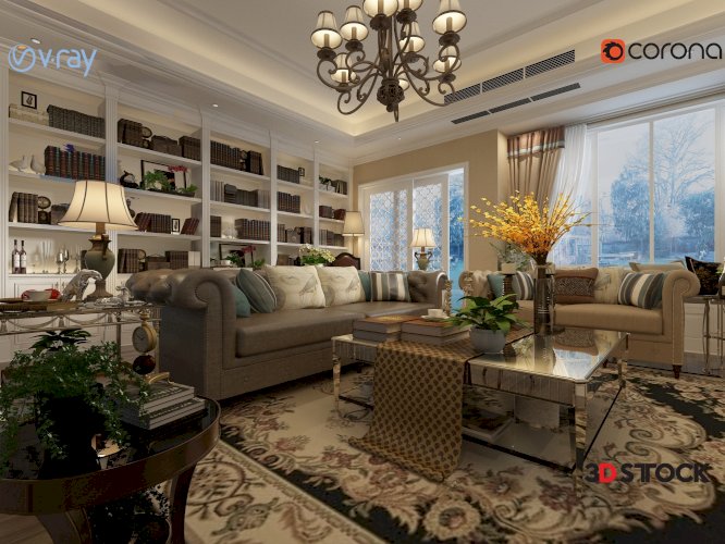Living room set, sofa and sofa beds, fireplace, ceiling lighting, bookshelf, books, carpet, decorative plant.