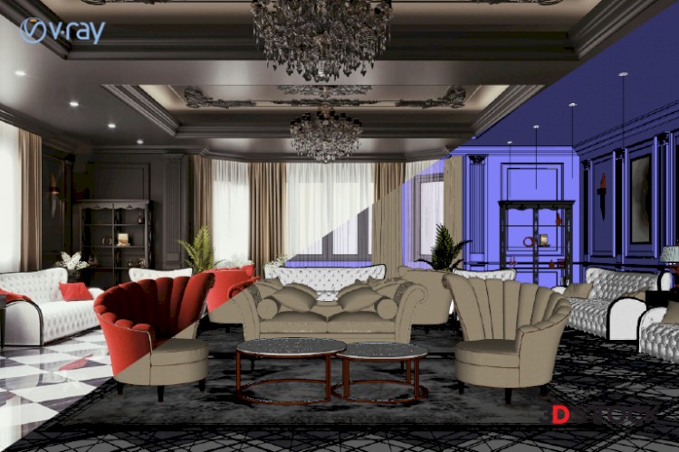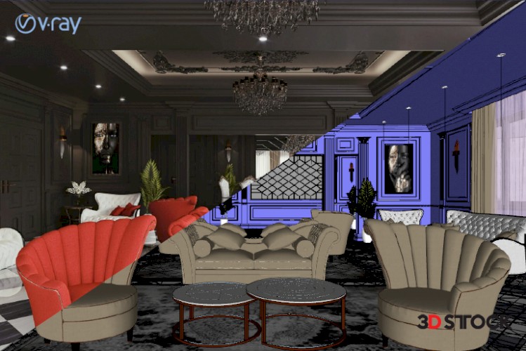 Living room modeling, table, lobby desk, chair, Living room space, Living room accessories, with texture, with light set, ready render settings, sketchup , vray render