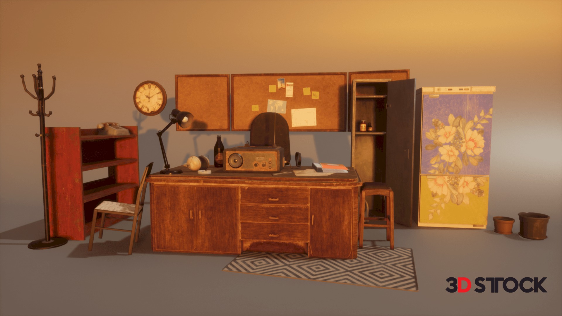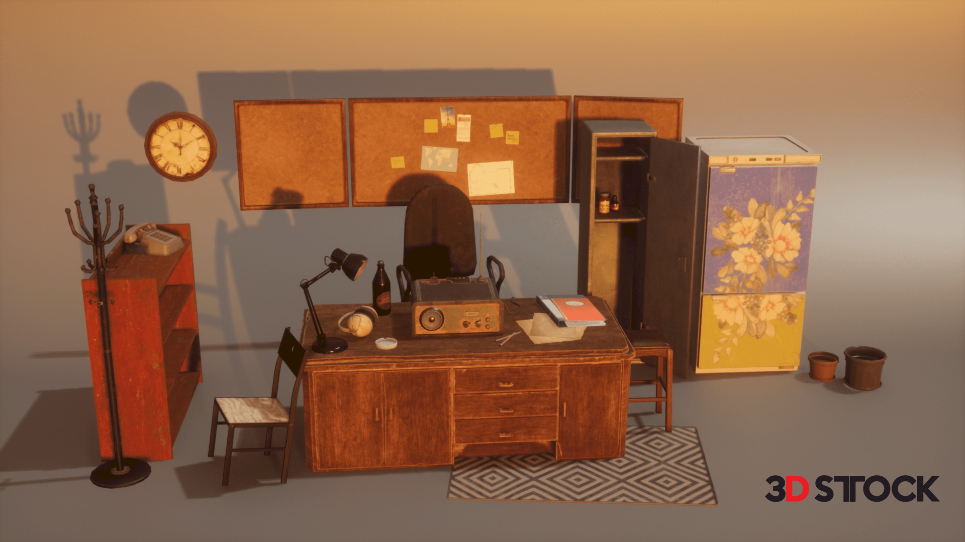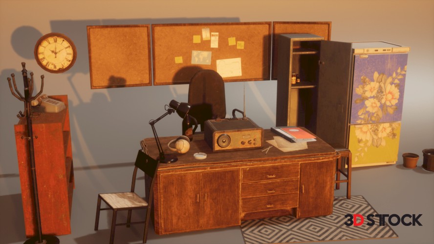 33 models of old office furniture with textures and uv