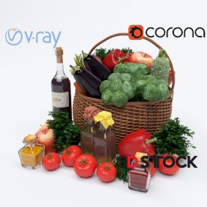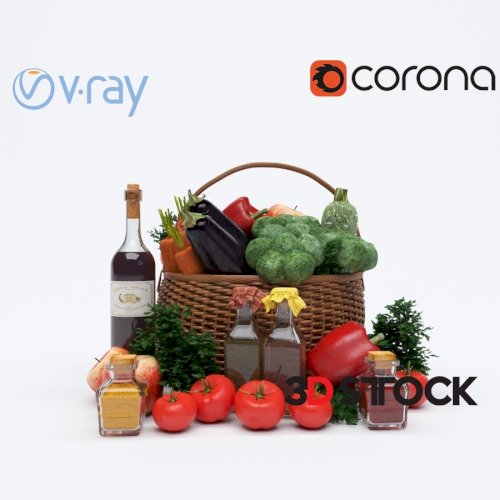 Vegetables Basket Wine Tomatoes Olive Oil Parsley Eggplant Red Paper Apple Broccoli Carrot Turmeric Zucchini