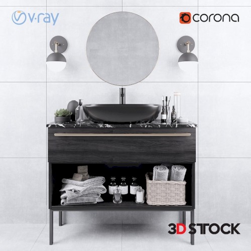 white bathroom accessories and furniture 3d model ready 3dmax corona vray
