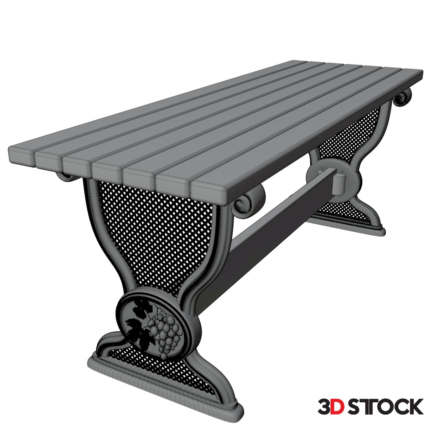 The set includes a table, a chair and a bench. Number of triangles: 72088+66210+66808=205106 (1665824+3511214+1585575=6762613).