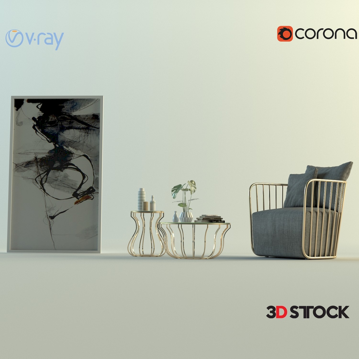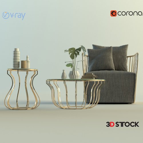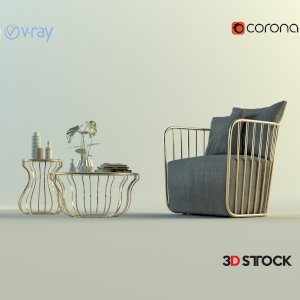 armchair, 3d, model, table, paint,coffe table, armchair set, armchair 3d model, plant, flower, gray, vray, corona