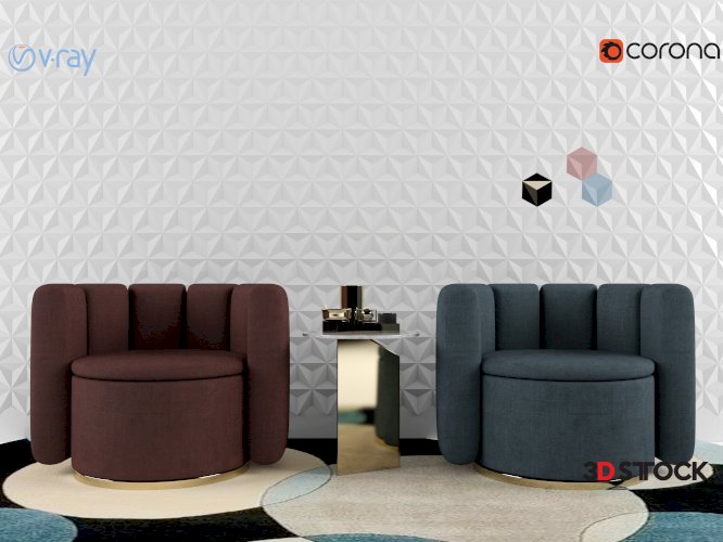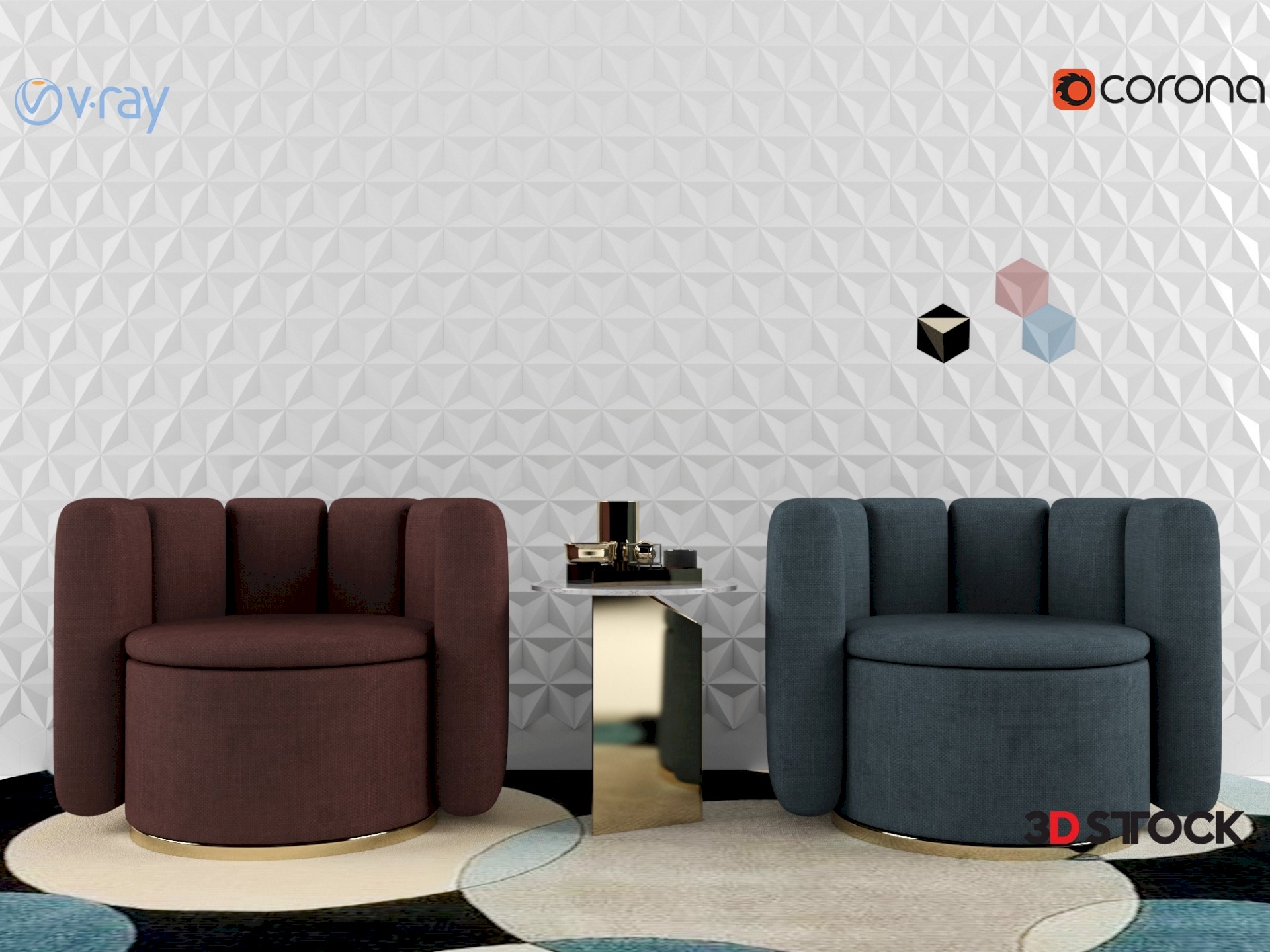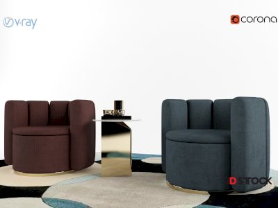 Burgundy and dark blue color armchair, carpet and coffee table.