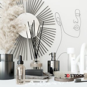 Bathroom set with face sculpture