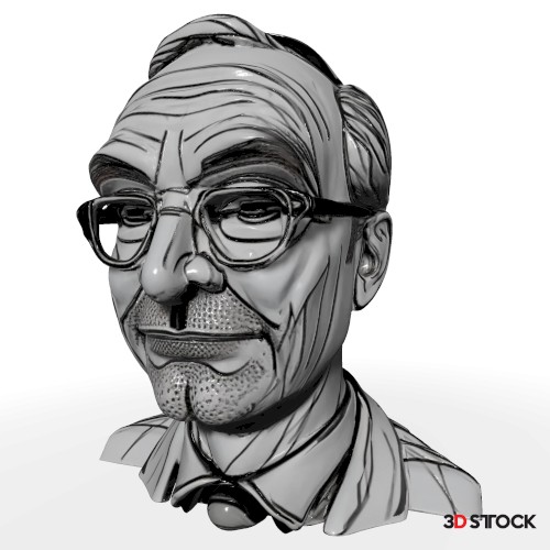 This elegant 3D printable bust captures the distinguished essence of a classic gentleman with remarkable detail. Featuring stylized line work reminiscent of illustration techniques, this monochromatic sculpture showcases an older gentleman with glasses, bow tie, and carefully textured facial features.