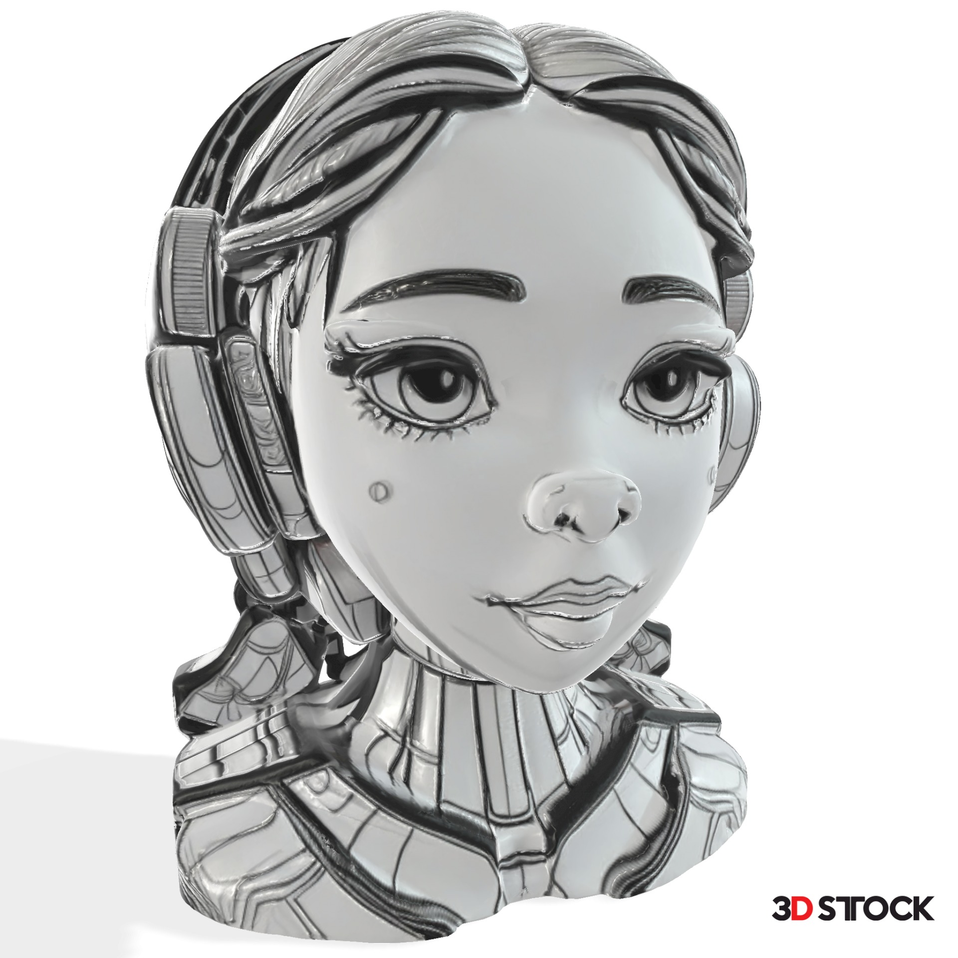 This 3D bust features a futuristic, headphone-wearing character with delicate facial details and sleek robotic elements. It’s a blend of sci-fi flair and modern artistry, making it a fun and eye-catching display piece. The model captures a balance between smooth, organic curves and crisp, high-tech shapes—perfect for showcasing metallic or glossy filaments.