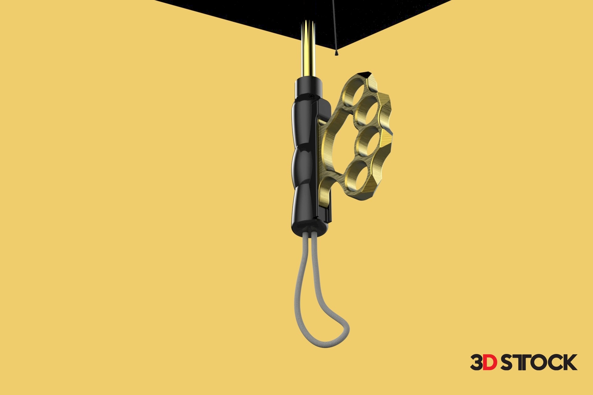 Concealed Weapon: The brass knuckles are likely hidden within the handle, maintaining the umbrella's innocuous appearance.