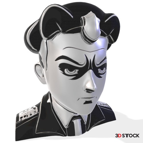 This stylized bust showcases a fun, cartoon-like officer figure with bold facial details and a playful twist—a small horn on top! It’s designed to be both visually striking and easy to 3D print. The smooth surfaces help reduce the need for excessive supports, and the compact shape makes it a great display piece.