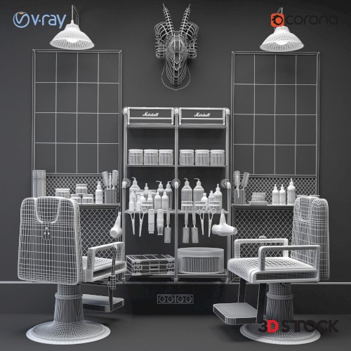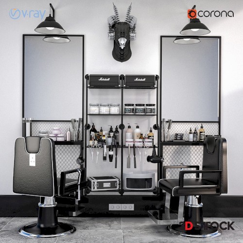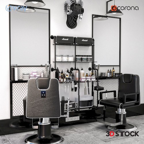 hairdresser beauty center interior mirror barber chair 3d model