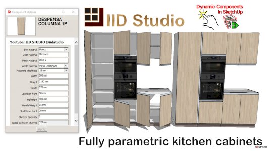 - **All cabinets are sketchup dynamic components fully parametric you can resize as per your project size**