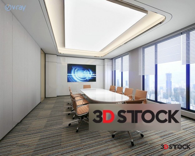Meeting room modeling, bookshelf, table, office desk, television, office chair, office space, office accessories, with texture, with light set, ready render settings, 3dmax file , vray render corona render