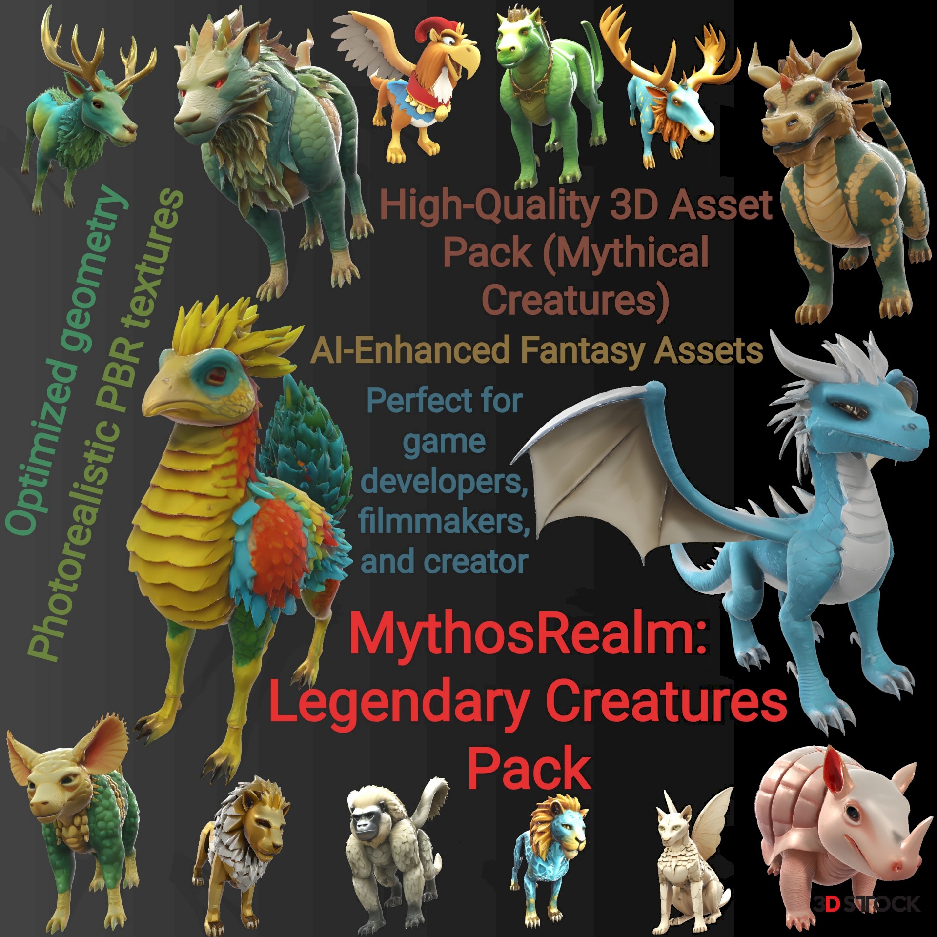 Step into a world where imagination meets technology! MythosRealm: Legendary Creatures Pack is a stunning collection of AI-enhanced, artist-curated 3D models that blend ancient mythology with cutting-edge design. Each creature—from majestic dragons and fiery phoenixes to mystical unicorns and armored armadillos—features hyper-detailed PBR textures, optimized low-poly geometry, and seamless compatibility with popular engines like Unity, Unreal, Blender, and Sketchfab. Perfect for game developers, filmmakers, and creators seeking to bring fantastical worlds to life!