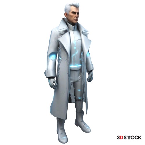 Imagine a sleek, futuristic figure wrapped in a long, stylish coat with glowing accents and a confident stance. This design blends sharp, modern lines with a touch of sci-fi flair. The coat’s panels and high-tech details give it a sophisticated look, making it an eye-catching collectible or display piece.