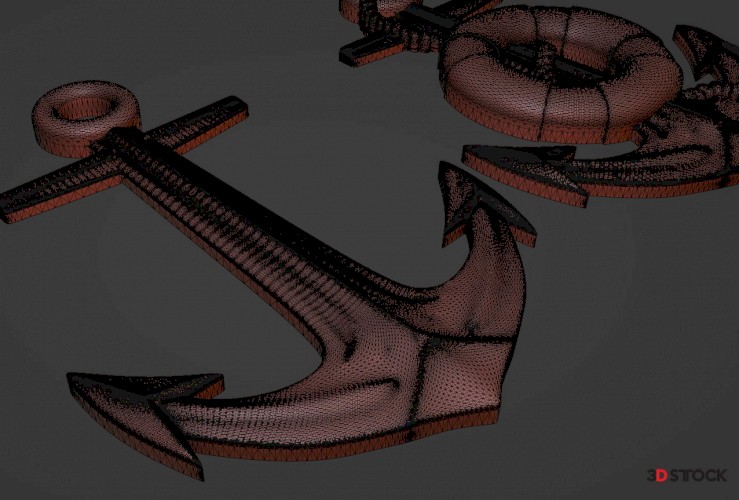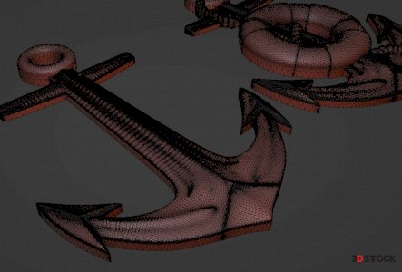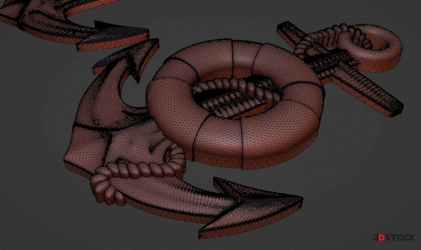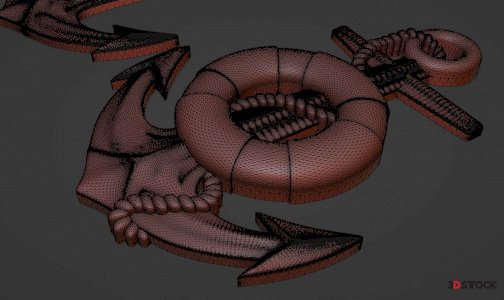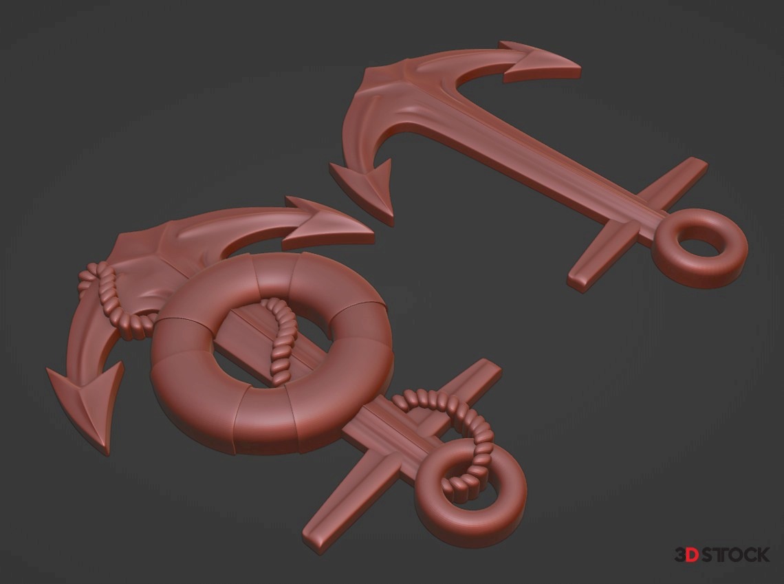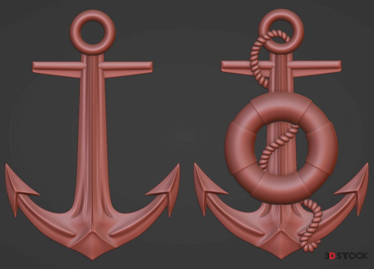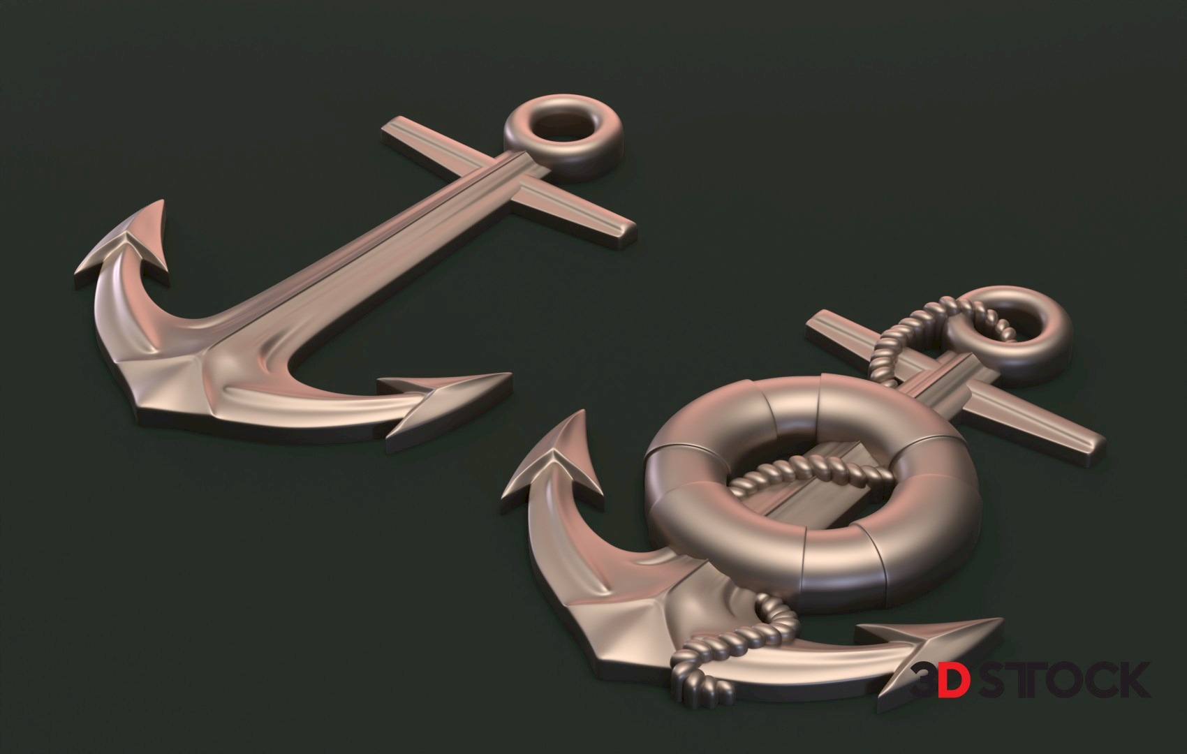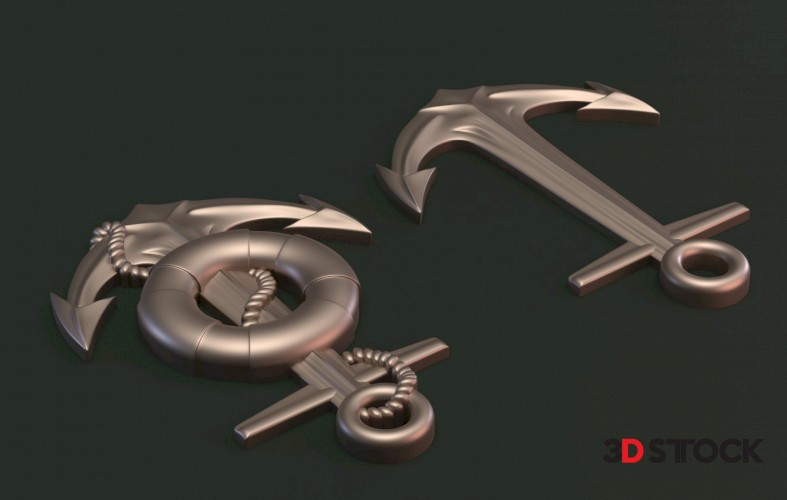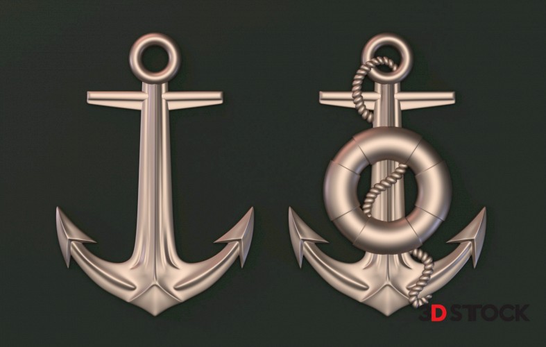 Sea anchor, bas-relief. 3d models can be used for 3D printing. High-poly 3d model. Price for two models! Formats: STL, OBJ, 3MF