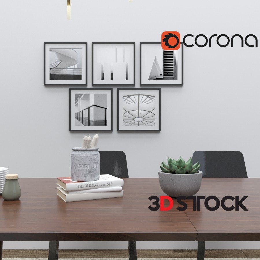Dining Set Table Chair Accessories Lamp Frame Vase Plant Floor Lamp Parquet Rug Carpet Wall
