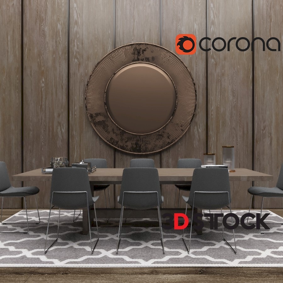Dining Set Table Chair Mirror Wood Accessories Wall Carpet Rug Book
