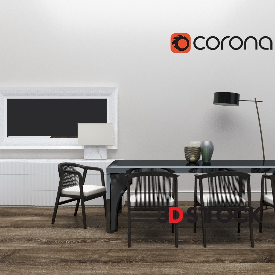 Dining Set Table Chair Floor Lamp Storage Parquet Mirror Vase Accessories Tableware